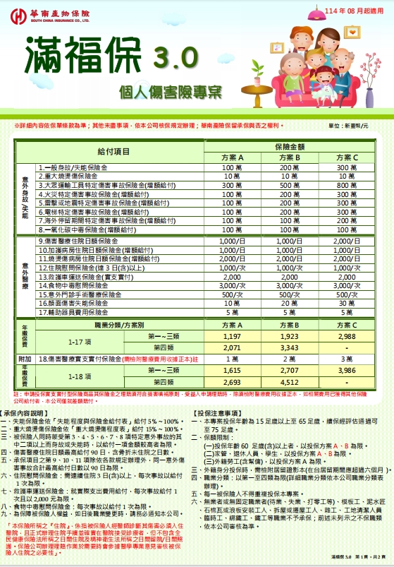 優惠內容: 1.團保規劃:華南產物保險3.0方案。